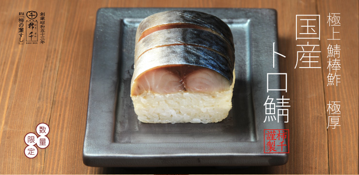 肉厚の国産最高級鯖に、北海道産真昆布の旨味をしみ込ませた「極上 鯖棒鮓」です。