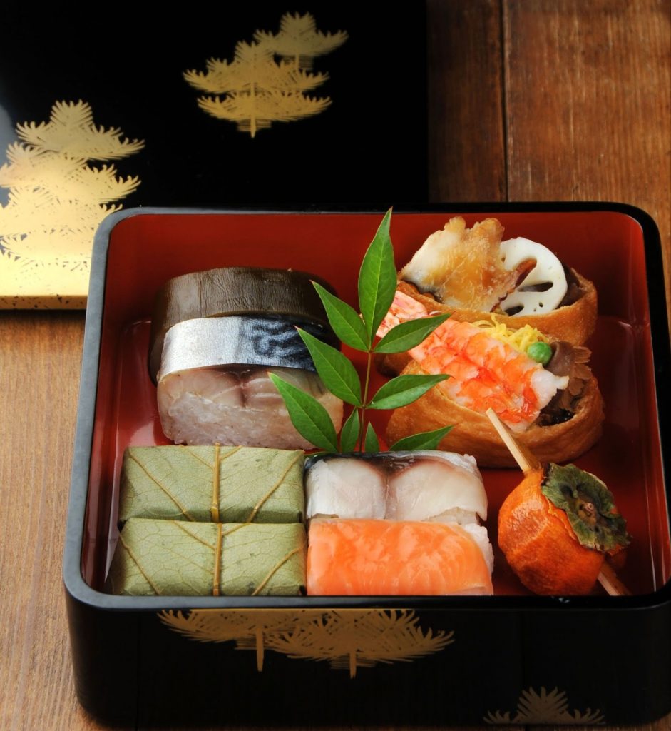 I-2. 濃密なおせち料理に寄り添う柿の葉すし