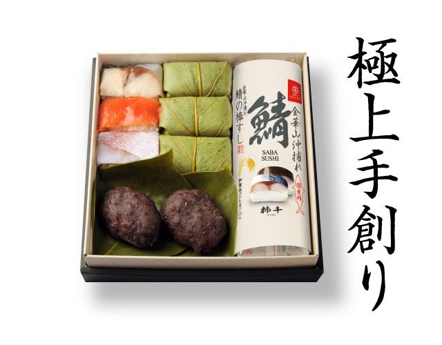 筍が入った極上柿の葉すし詰合せと棒すしのセット商品です。丁寧に押し上げた棒すしは、切り分ける手間なく美しい断面をお楽しみいただけます。素材の持ち味を活かしたしっかりとした味わいは、屋外でもおいしさが際立ちます。お花見だけでなく、春の行楽のお供としても最適。セットの棒すしは、鯖の棒すし、トロ鯖棒すし、焼さばすし、金の華サーモンの棒すしの4種類からお選びいただけます。