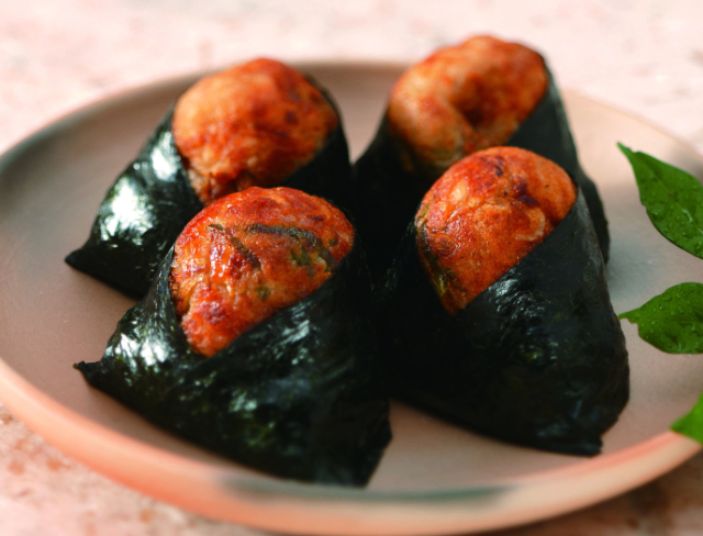 おむすびに合うように開発した和風だし味の特製たこ焼を、伊賀米コシヒカリのご飯と合わせ 「たこむす」 に。食べてみて納得のおいしさです。