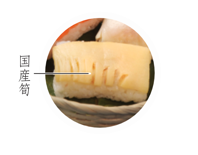 国産の香り豊かな筍、選び抜かれた極上の国産鯖と鮭、鯛、穴子を、つややかな銘米「伊賀米コシヒカリ」に合わせ、清々しい香りの柿の葉で包んだ銘品。