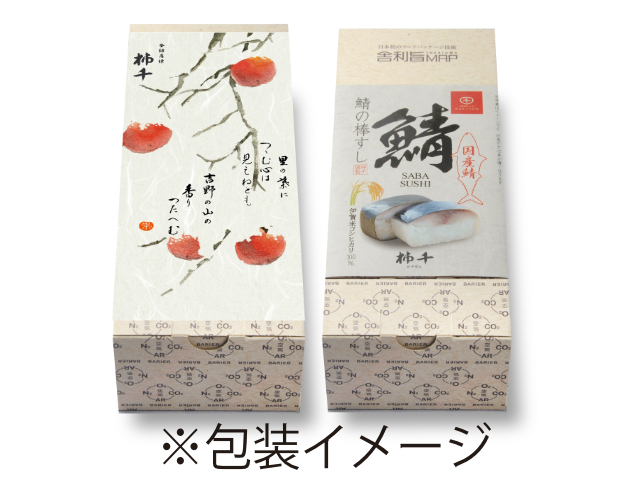 | 内容量 | ・柿の葉すし10個(さば4・さけ・たい・あなご/各2) ・鯖の棒ずし 8貫 |
