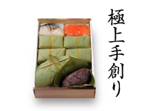 「極上 柿の葉すし」「極上 鯖棒鮓」「極上 焼さば」の人気セット『若草』、をはじめ、「極上 柿の葉すし」と「極上 鯖棒鮓」もしくは「極上 焼さば」「金の華サーモン」「大トロ鯖の棒鮓」などお選びいただけます『香久山』まで、ご希望の用途に合わせて多彩な商品をご用意しています。
