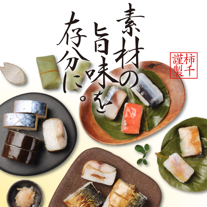 いずれも、身に張りのある最高級国産真鯖に、食味ランキングで*高評価の銘米「伊賀米コシヒカリ」を使用。シャリは、柿千オリジナル合わせ酢で深みのある旨味を引き出しました。 吟味された素材を用い、職人による手創りで仕上げた絶品の味覚をご賞味ください。
